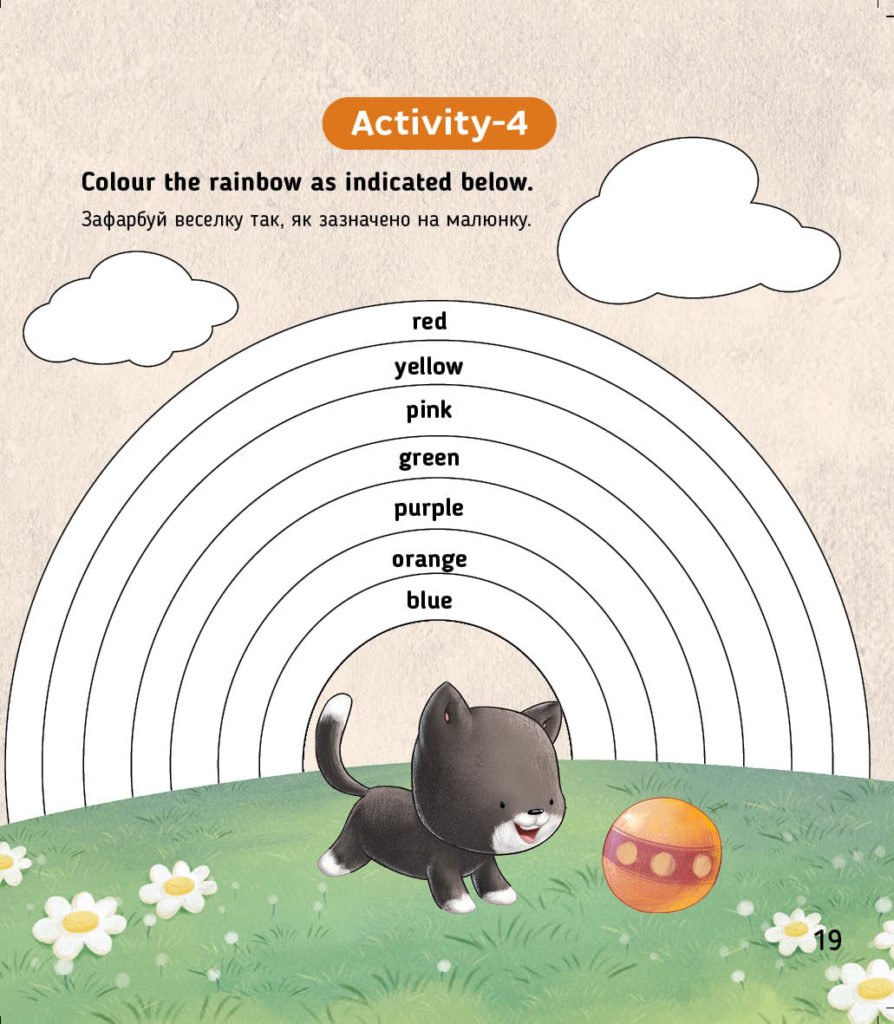 Перший рівень: «Мій алфавіт», «Мій одяг», «Мої улюблені кольори», «Мої цифри», «Дієслова»